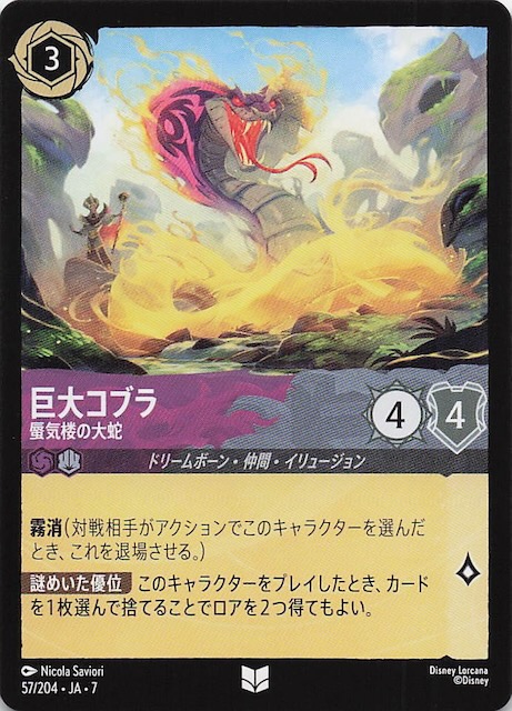 【アーケイジアと魔法の島 アンコモン】巨大コブラ 蜃気楼の大蛇 57/204・JA・7